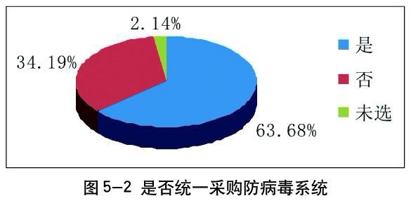 防毒在普通高校逐渐达成共识,统一采购有利于安全统一防护。149 所学校采用统一采购了防病毒系统的方式(如图5-2)。