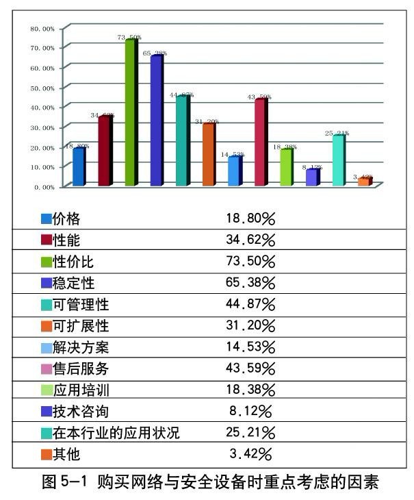 购买网络与安全设备时,性价比、设备稳定性和可管理性、售后服务等仍是系统和设备选购的重要考虑对象(如图5-1)。