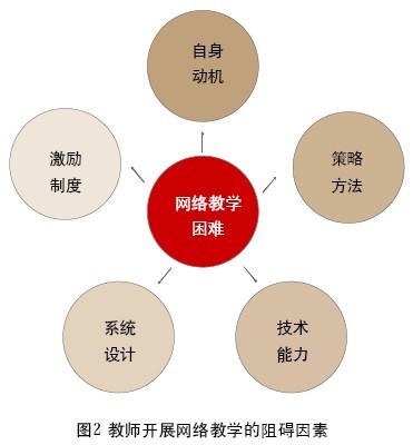 在问卷基础上,通过对教师的后续深入访谈,我们发现教师开展网络教学的阻碍因素主要体现在五个方面(如图2所示)。