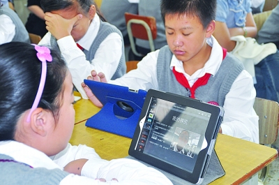 学生们在使用iPad上课。杨甜子 摄