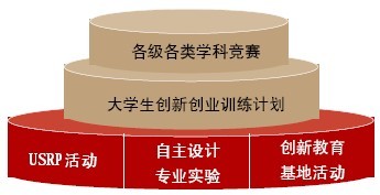第一层,以创新教育基地和USRP活动为基础,逐步训练学生的创新意识和各方面素质。