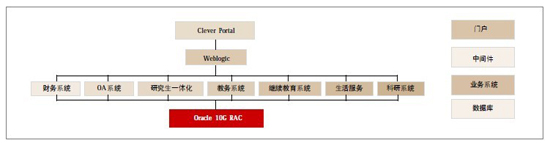 业务系统的WEB服务统一通过F5发布到校园网,所有业务系统的数据均存放安装于富士通小型机的OracleAC上,而业务系统的程序及数据库的文件则集中存放在E3000存储上。