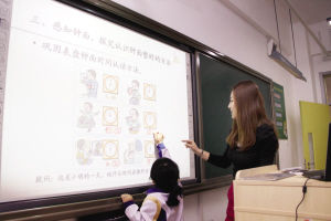 “这就是开发区正在推广的电子白板教学系统。”相关负责人告诉记者,泰达实验小学配备的电子白板教学系统,主要由笔记本电脑、88英寸的电子白板和近焦投影设备组成,可以让老师的讲课更加生动、形象,也方便孩子和老师互动。今后这样的系统将普及到开发区的所有公办学校。“目前,开发区已经有一半以上的教室装备了电子白板教学系统。”