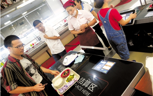 “以前用的是刷卡机,算价钱时总要想半天,不但时间慢,有时还会算错,但在这里这些差错都没有出现过。”李阿姨说,虽然高峰期来吃饭的师生很多,但由于结算系统的结算时间非常短,根本就不需要排队。