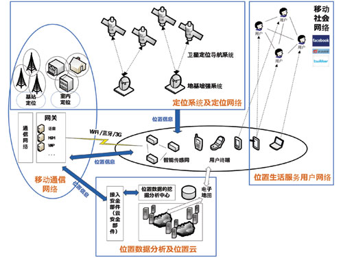 第一个网络是生活位置服务的定位网络,它是由卫星定位,室内定位以及移动通信的基站定位三大类型组成。卫星定位是不可迁就的,其精度极高;室内定位是通过移动网络或者WIFI 进行定位,但其精准度不高;基站定位也是可以覆盖室内、外部,同样精度不是很高。