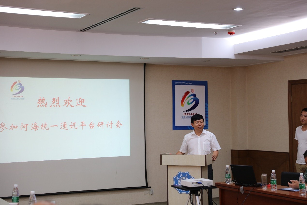 河海大学统一通讯平台研讨会于2015年9月17日在我校召开。本次会议的主题是:围绕统一通讯平台目前的产品、功能以及河海大学统一通讯平台的建设与应用情况进行研讨,共有南京大学、东南大学等全省27所本科学校30余名代表出席会议。